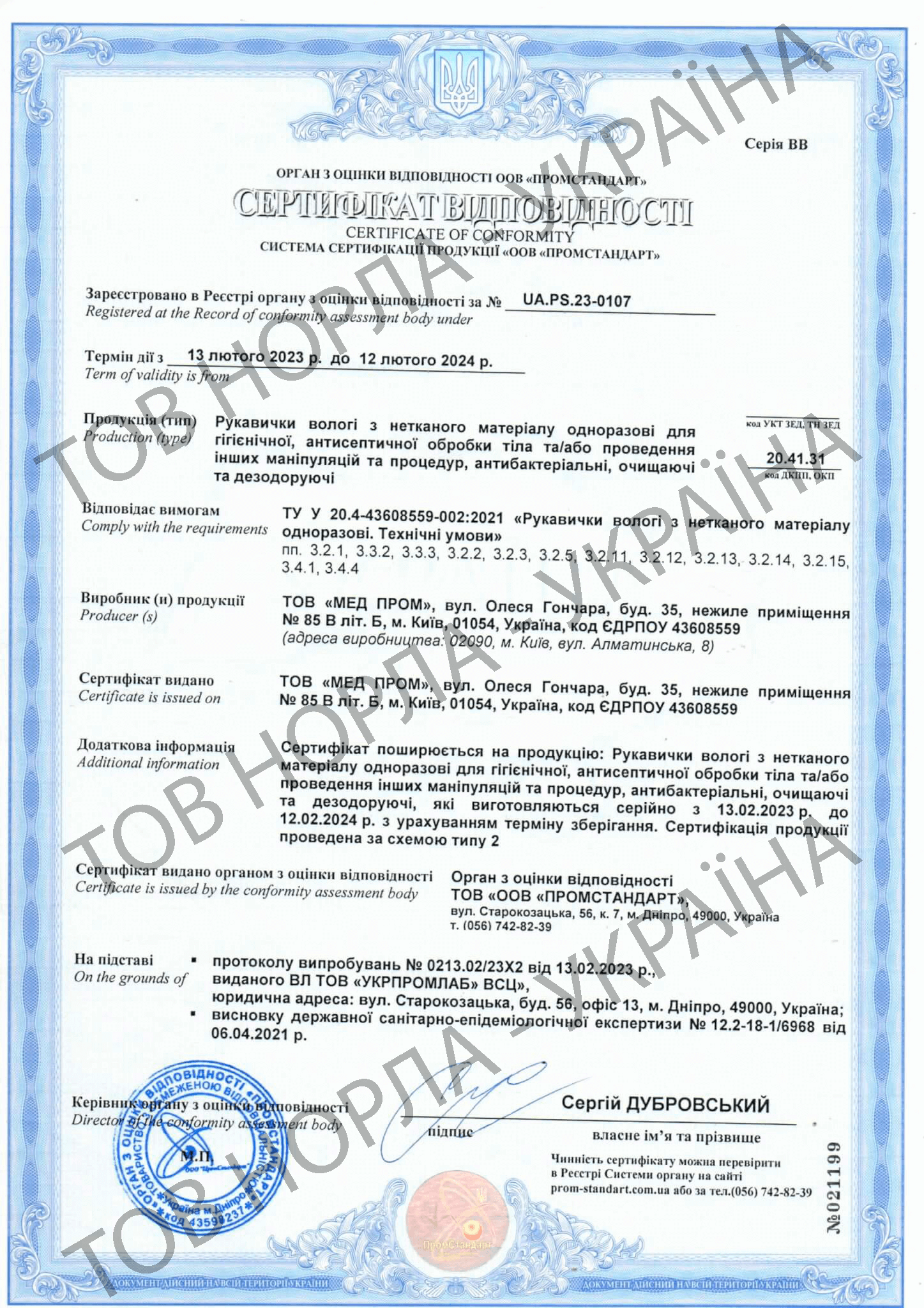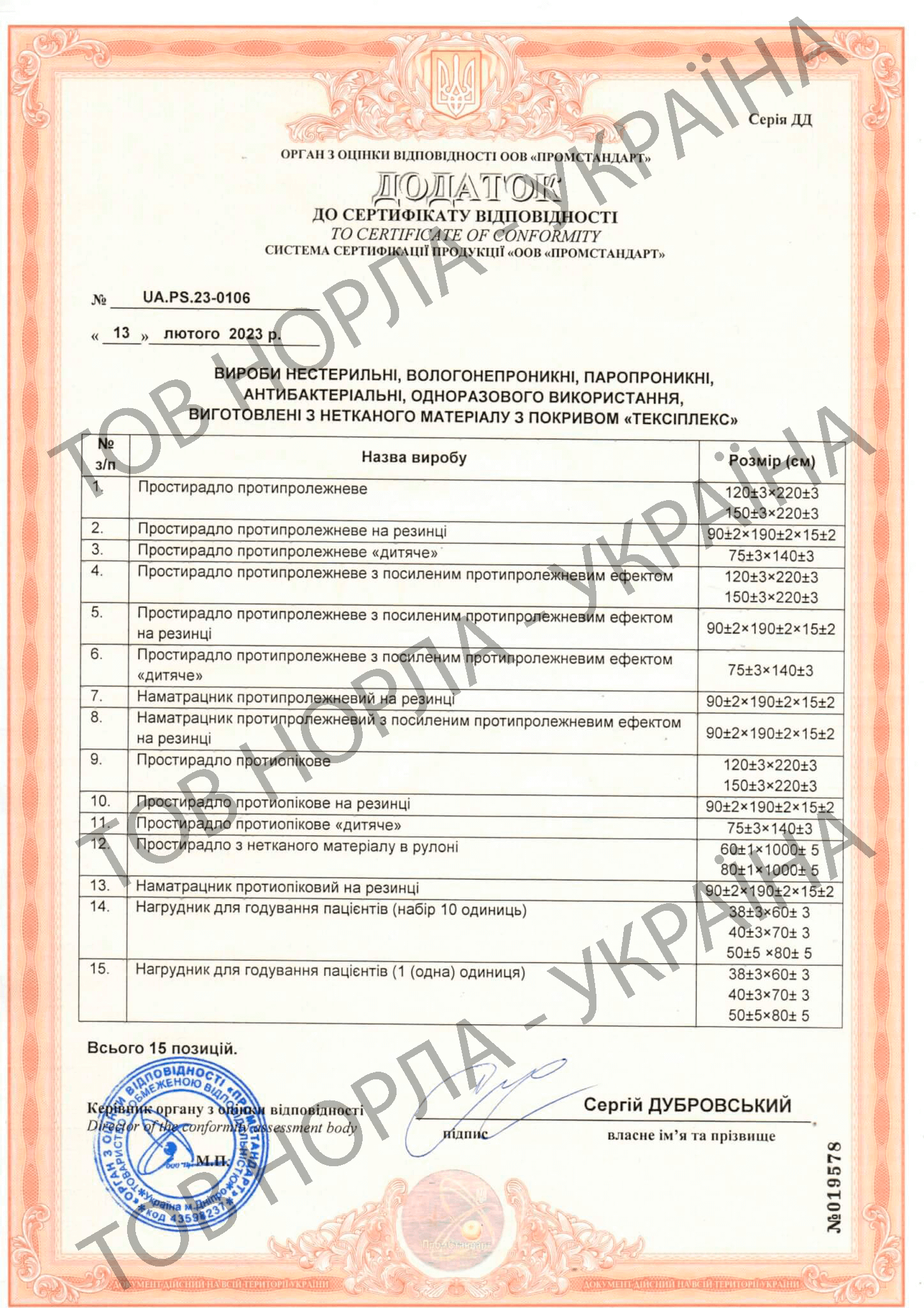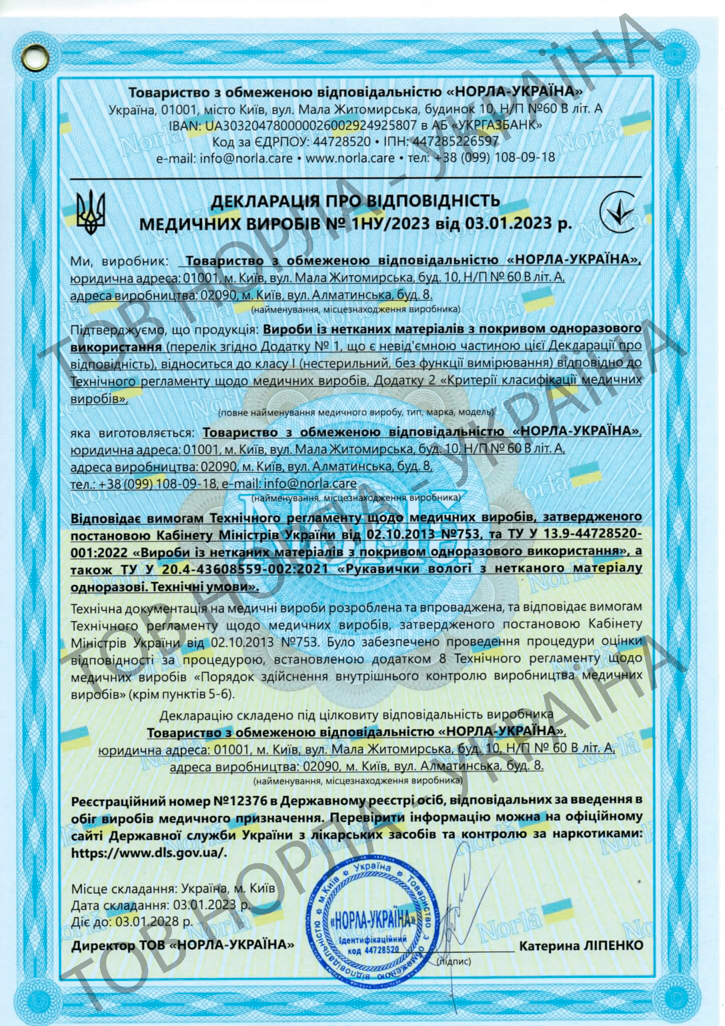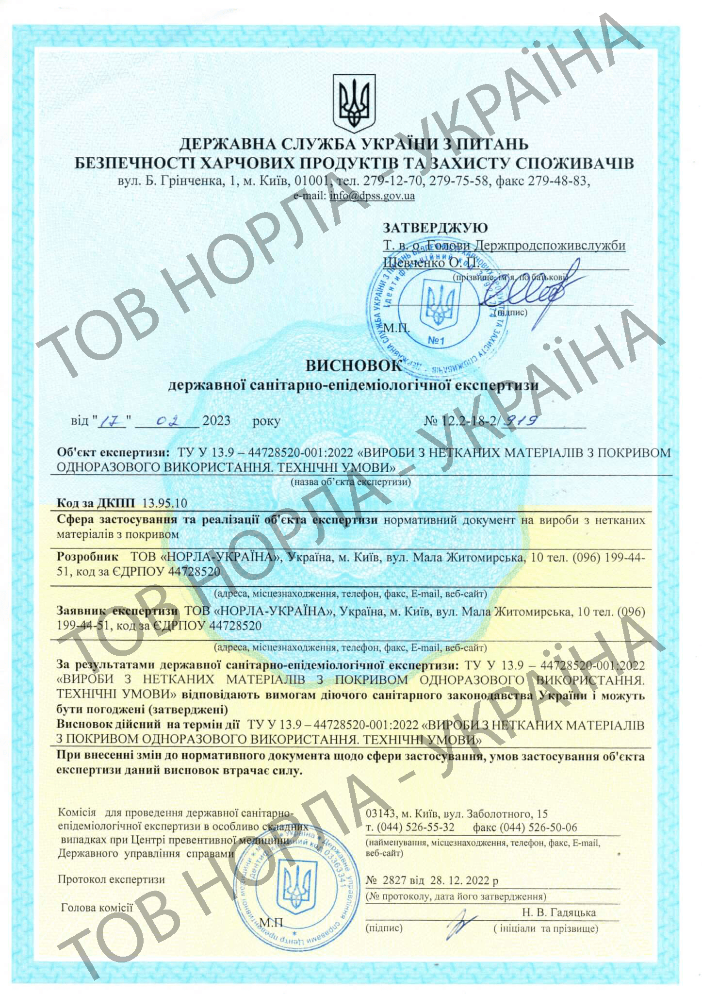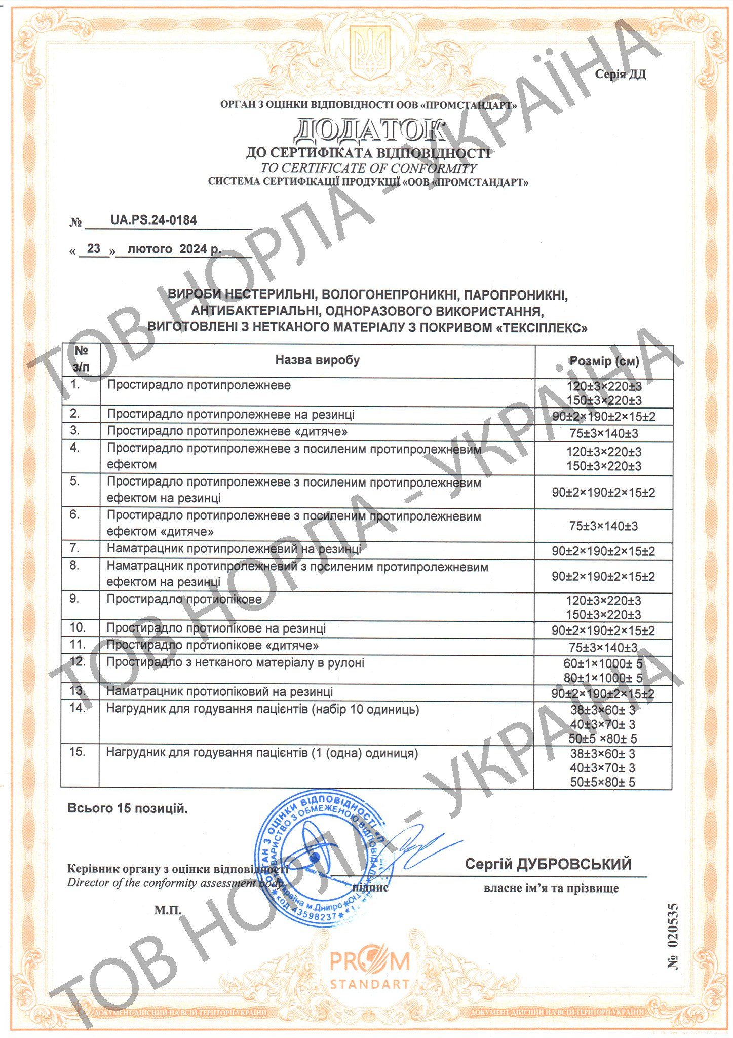 Наша компанія має всі необхідні сертифікати відповідності на всю продукцію, що відпускається під маркою «НОРЛА-УКРАЇНА».