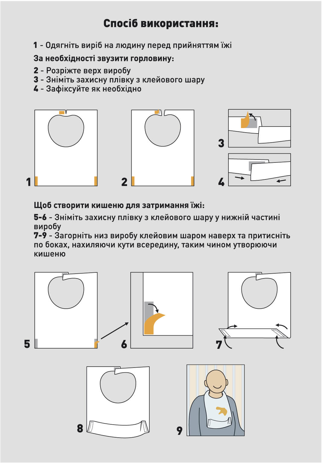 Засіб гігієни спеціального призначення для захисту одягу та білизни лежачих хворих та малорухливих пацієнтів під час прийому їжі, проведення санітарно-гігієнічних маніпуляцій та різноманітних процедур (інгаляції тощо) у медичних установах, закладах соціального захисту та побуті.